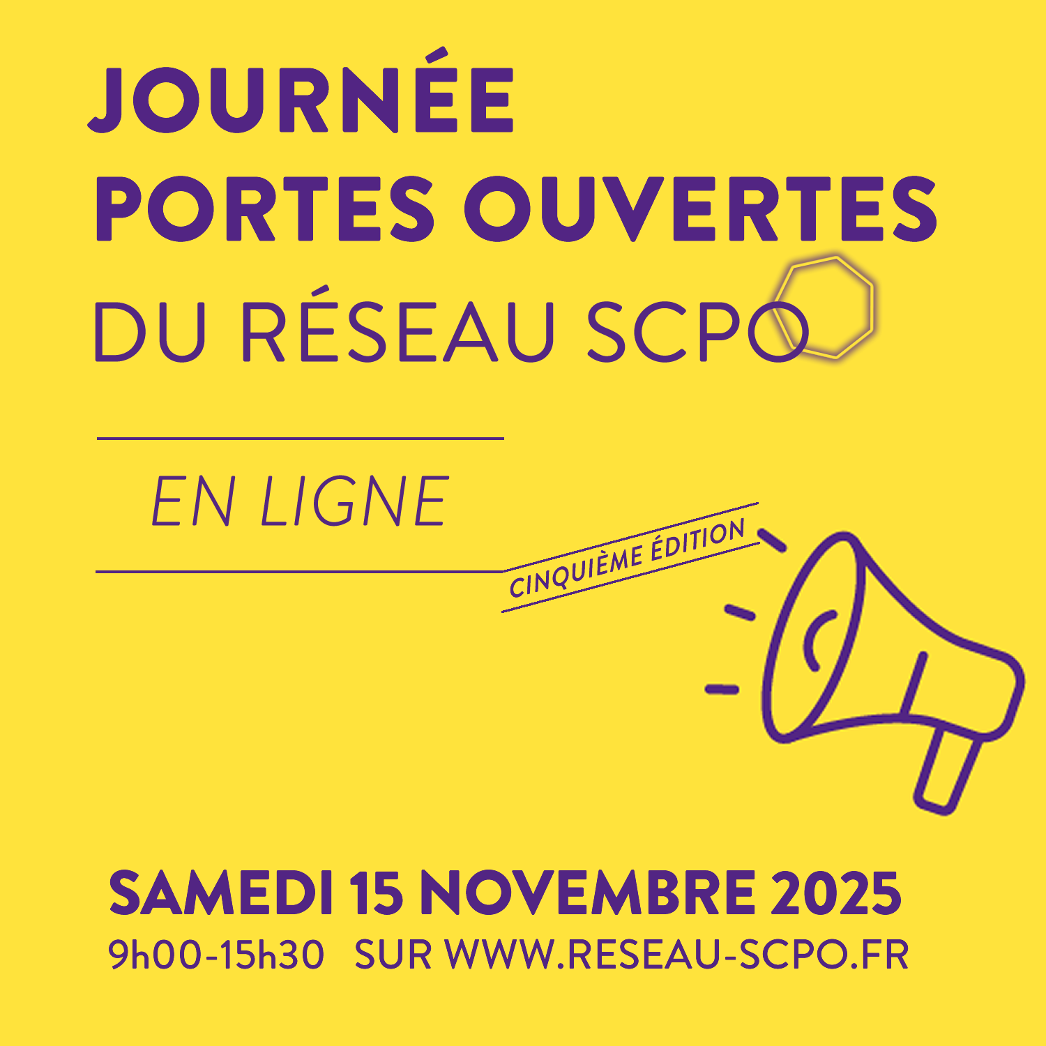 Lors de cette quatrième journée portes ouvertes virtuelles du réseau, venez rencontrer et échanger avec nos élèves et nos équipes pédagogiques et administratives, en direct depuis nos 7 Sciences Po !